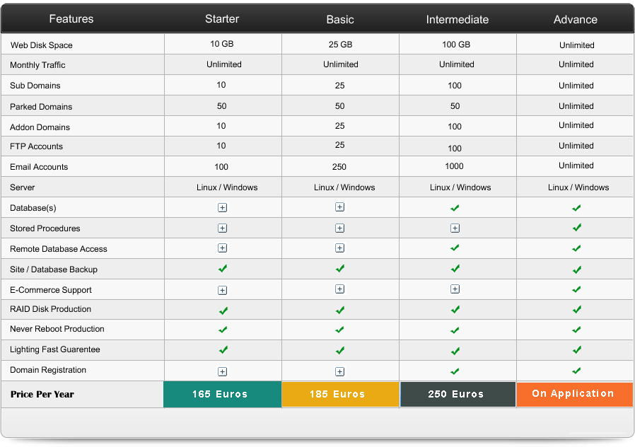 Padserv Hosting Packages are explained below.